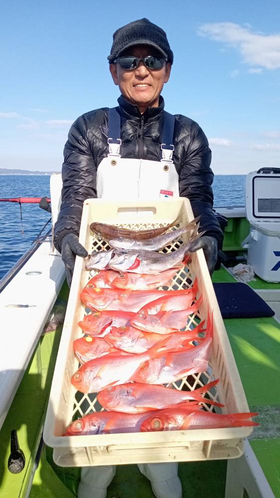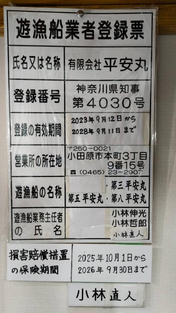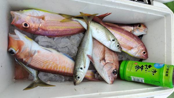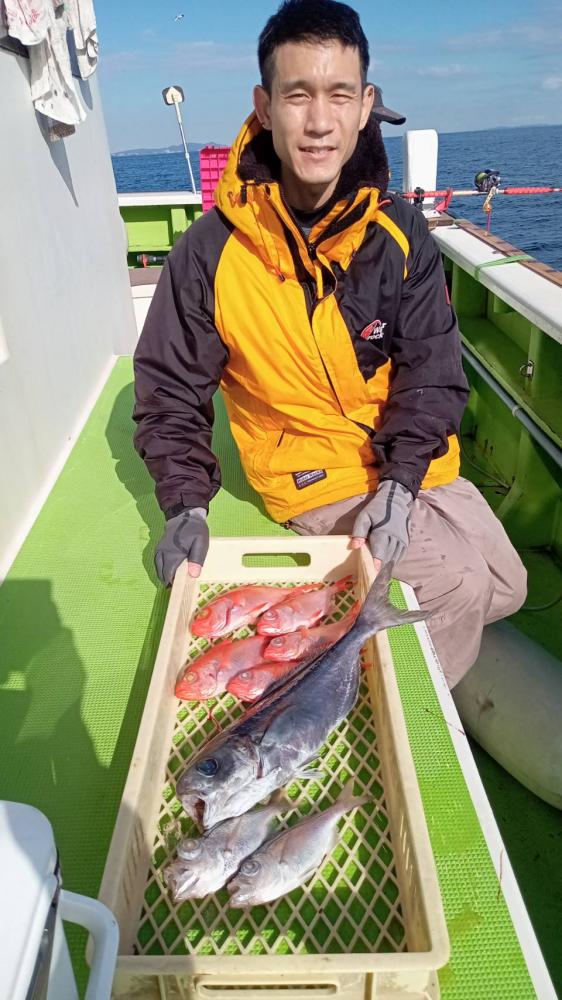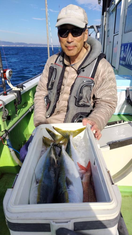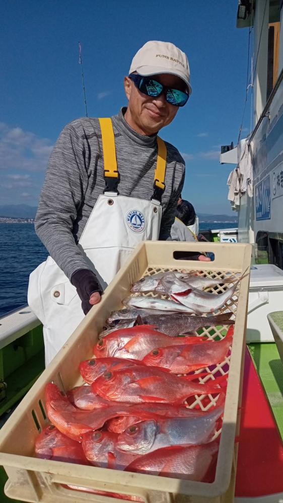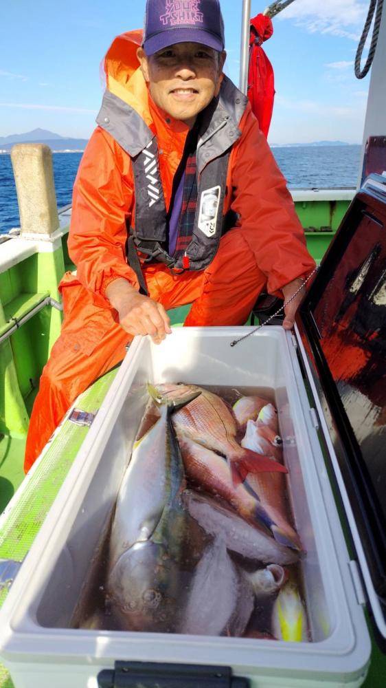 19日、今日も朝から良いお天気でした。風は、北東風がわりとそよそよしていましたが、小田原沖はたいした風もなく、海上は良い凪でしたよ!!今日は、「イナダ五目船」と「マダイ船」が出船しました。