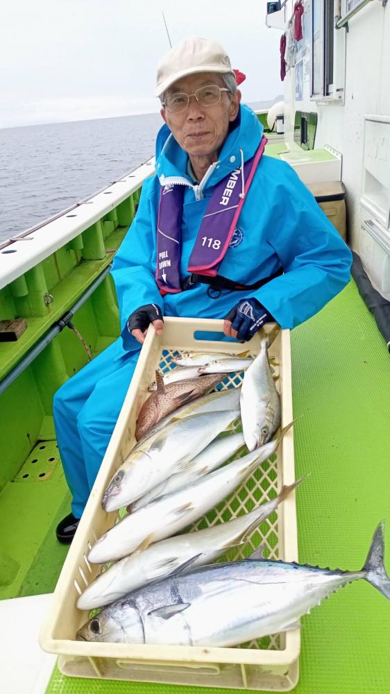 1日、今日から10月です。午前中は雨が降って、少し肌寒かったです。日中は、日が差す時もありました。風は、一日北風がそよそよしていましたが、海上は凪でしたよ!!今日は、「本ガツオ・キハダマグロ船」と「イナダ五目船」が出船しました。