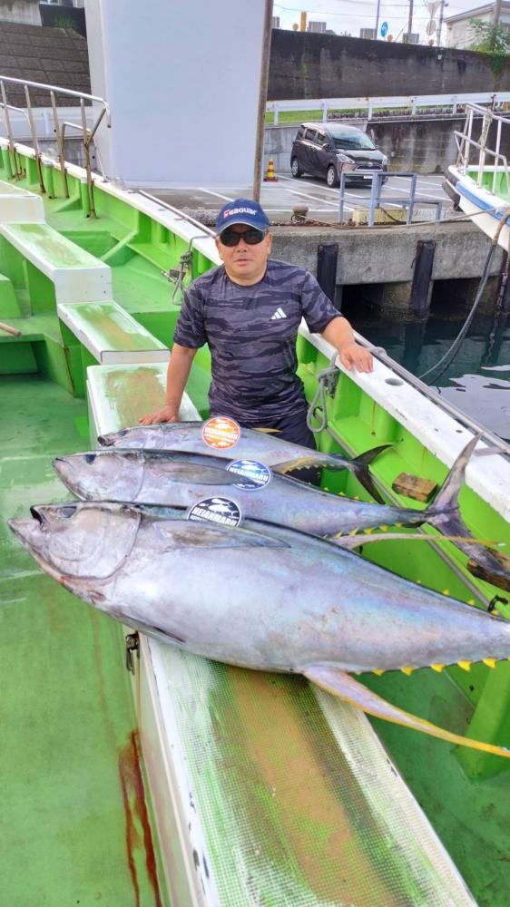 2日、今日は、お休みさせて頂きました。穏やかな、良いお天気でしたね。そして今日も、キハダは好調?のようでしたね。明日は、「本ガツオ・キハダマグロ船」と「根魚船」が出船します。「本ガツオ・キハダマグロ船」ですが、エサ釣りは満席となりました。ルアーは、若干空きありです。「根魚船」は空いていますよ~!!皆さん、宜しければ、遊びに来てください!!予約をお願いします!!