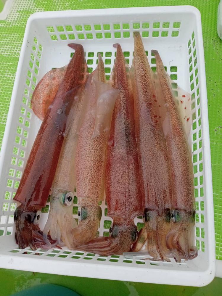 3日、今日は、朝から良いお天気でした。風は、北のち南風、どちらも弱く、良い凪の一日でしたよ!!今日は、「ヤリイカ船」と「マダイ船」と「根魚船」が出船しました。