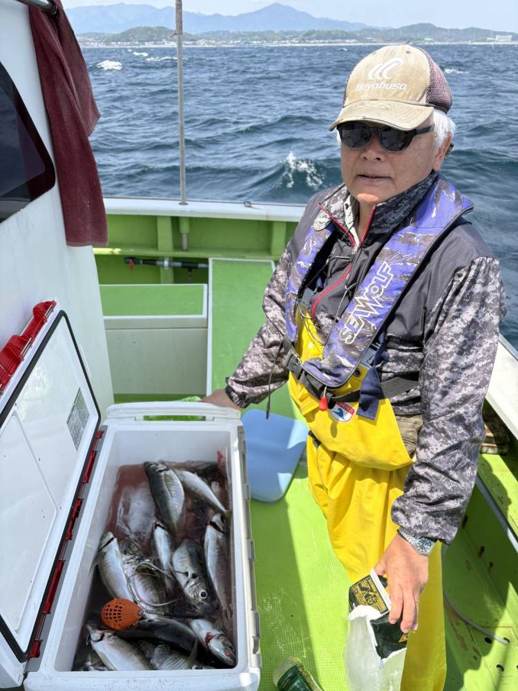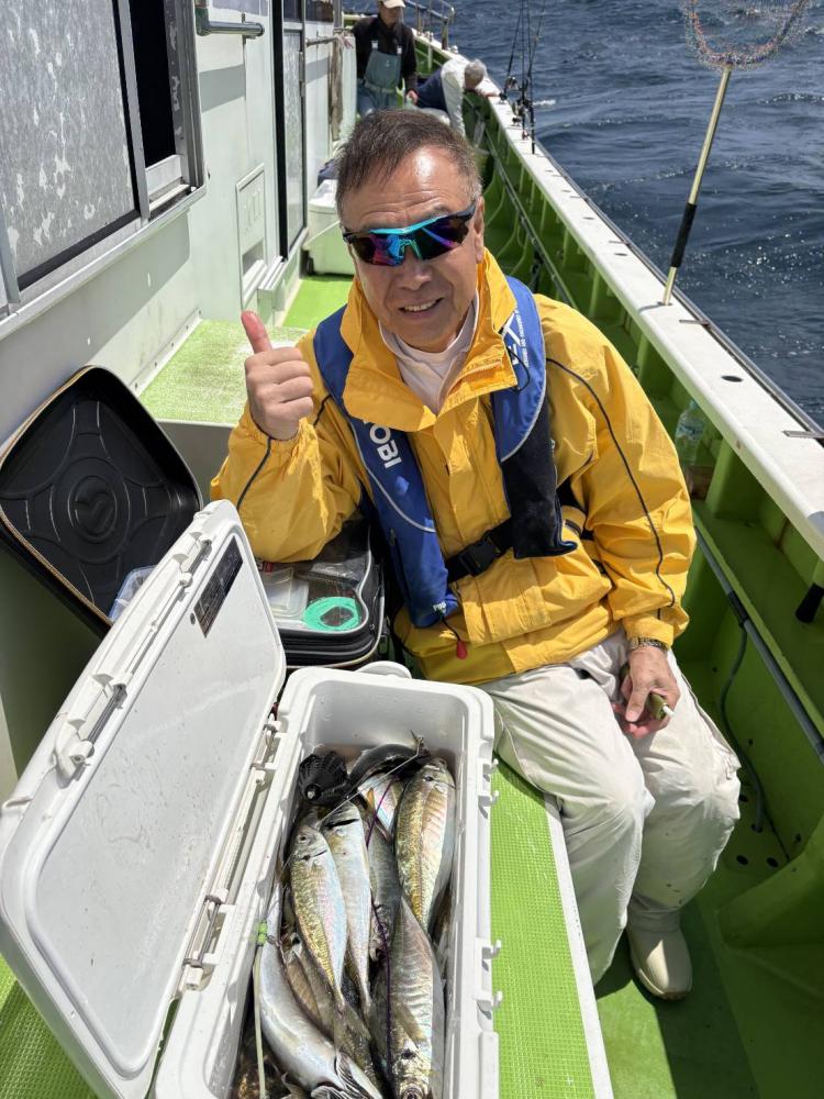 25日、今日も出船出来ました。二宮沖です。根周りからスタートし、反応の出入りで顔出す感じで、当たれば大型な感じでしたが、反応が出てても当たらなかったりでした。何度か反応にあてがい、当たりがなくなっては移動し、終盤は漁礁周りへ移動し、中型主体で顔見れました。反応の割に当たりの悪い感じがあり、釣果の伸びイマイチでしたが、皆さん「今日のアジは型が良い!」と、お土産十分の声をいただきました。という事で、今日は、アジ20~25匹・25~38cm、ワラサ4.4kg1本・サバ・クロムツ、が交じりました。明日も出船します!!皆さん、是非、遊びに来て下さい!!予約をお願いします!!