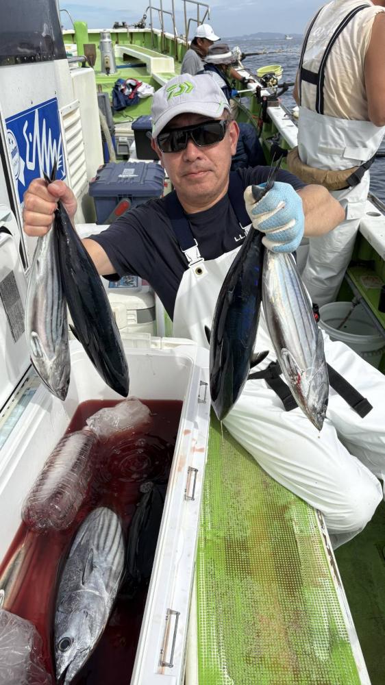 8日、今日も東方面です。今日は、朝からカツオの食いが良かったです。そんな中、キハダヒット!!順調にやり取りできましたが、最後に走られ、ハリス切れに・・・。その後も辛抱していると、ヒットもやはりハリス切れ・・・。場所移動し、直ぐにヒットも針伸び・・・。合間にキメジ2ヒットし1本キャッチ、そして瞬殺・・・。さらに場所移動し、ヒットもサルカンからなくなっていました。暫くしていヒットし、順調にやり取りできましたが、最後にサメに・・・、半分でした・・・。今日はダメかなと思っていると、ヒット!!なかなか上がらず、ようやく上がってくると、55kgの大物でした。最後に場所移動するも、瞬殺、引っ掛からなかった当たりが2回と・・・。という事で、今日は、キハダマグロ10ヒット・1キャッチ・1半分・0~1本、キメジ2ヒット・1キャッチ・0~1本・10.9kg、本ガツオ1~10本・1.0~2.5kg、でした