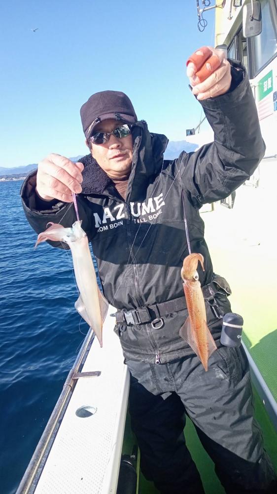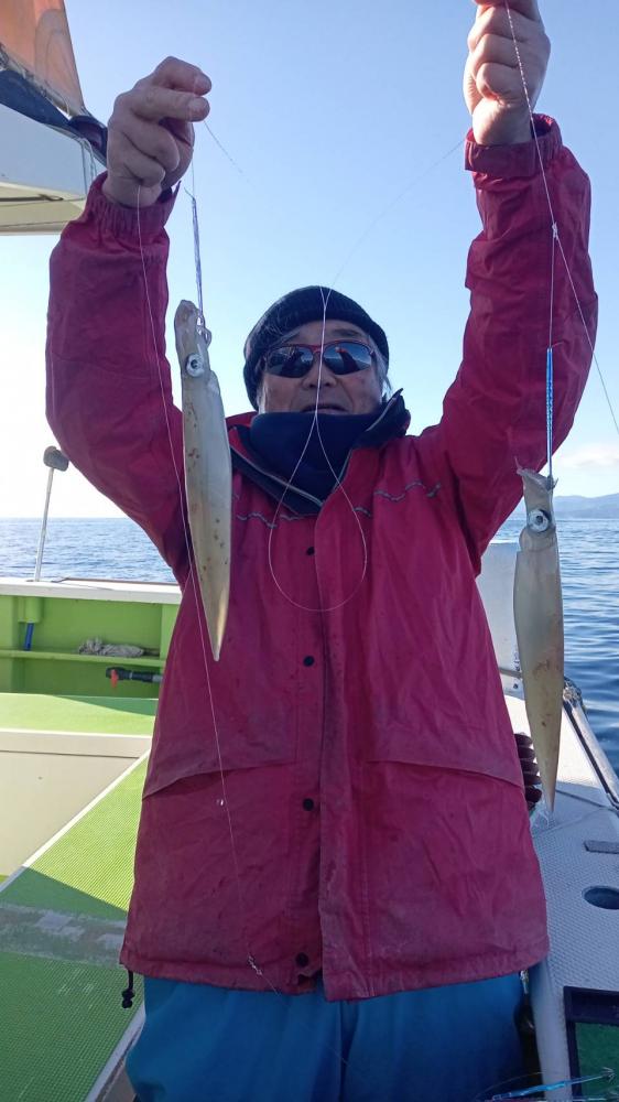 4日、今日も出船出来ました。今日は、二宮沖で辛抱してみました。やって空振りだったり、当たりがあったりも1人2人で、1杯ずつの地味な展開の一日でしたが、なんとか皆さんヤリイカゲット出来ました。という事で、今日は、ヤリイカ5~15杯・25~45cm、でした。