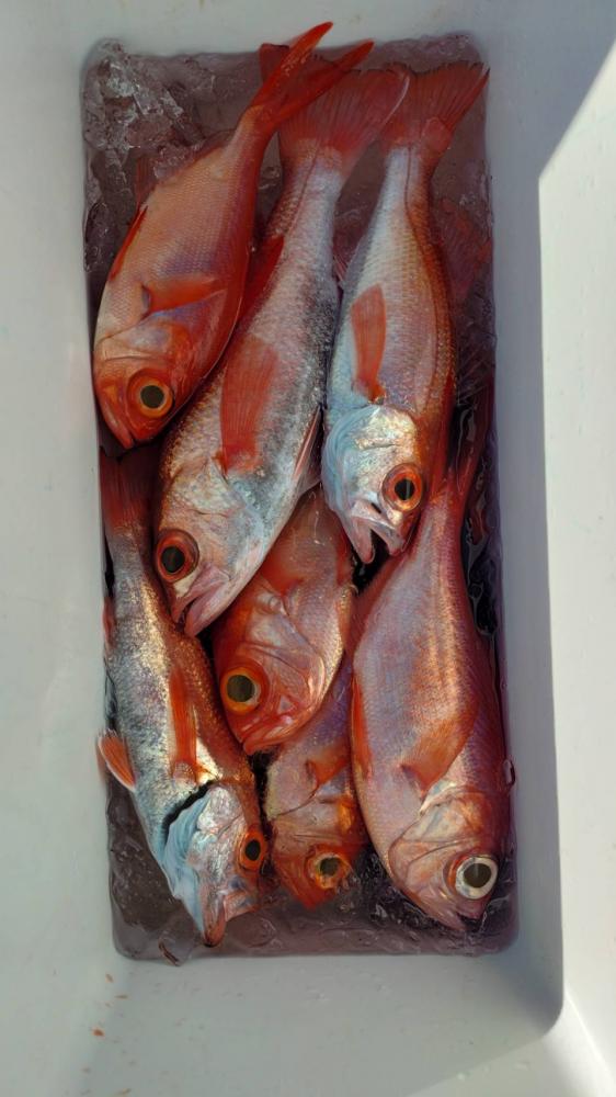 6日、今日は、小田原沖では反応見れず・・・、真鶴沖に行きました。しかし、反応見れず・・・。山でやっても顔を見るかどうかで、良い所無かったです。後半は、深みを狙い、アカムツ交じりでキンメの顔を見れました。という事で、今日は、キンメ0~7枚・25~33cm、アカムツ船中6匹・0~3匹、でした。