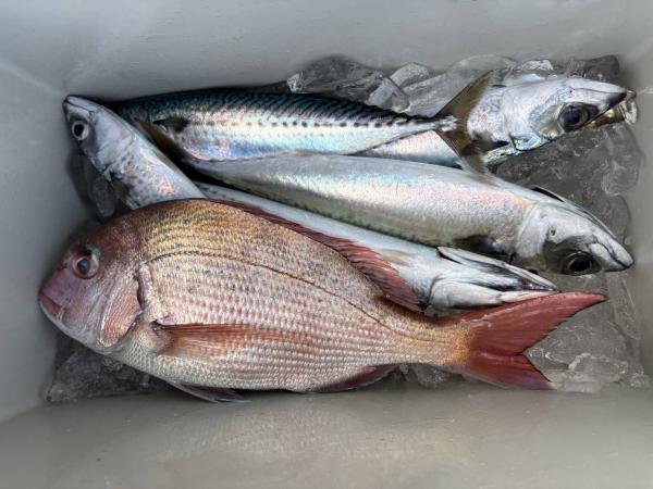 24日、今日も出船出来ました。小田原沖⇔二宮沖を狙いました。今日も、どちらでも当たりがあり、何枚か顔を見れましたよ!!型は、1.0kg前後がほとんど、今日は、外道にサバがわりと多かったです。という事で、今日は、マダイ船中7枚・0~3枚・0.7~1.3kg・バラシあり、アマダイ・カイワリ・アジ・サバ、が交じりました。
