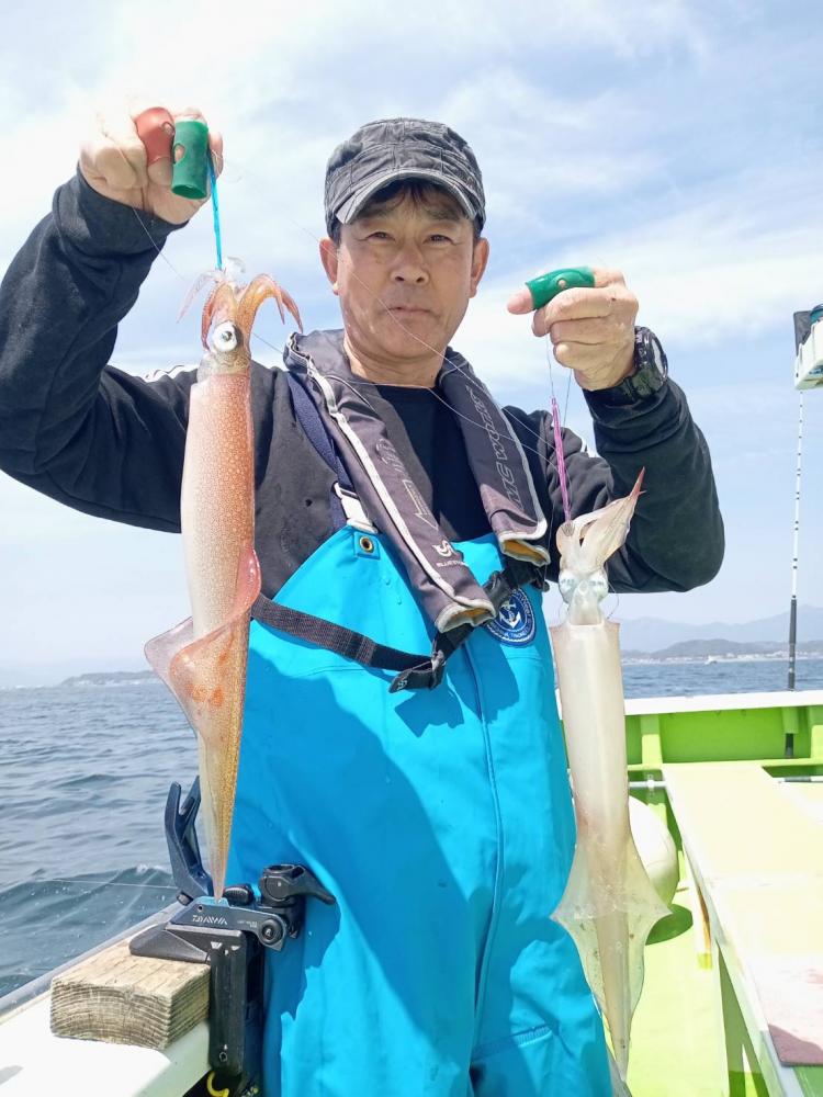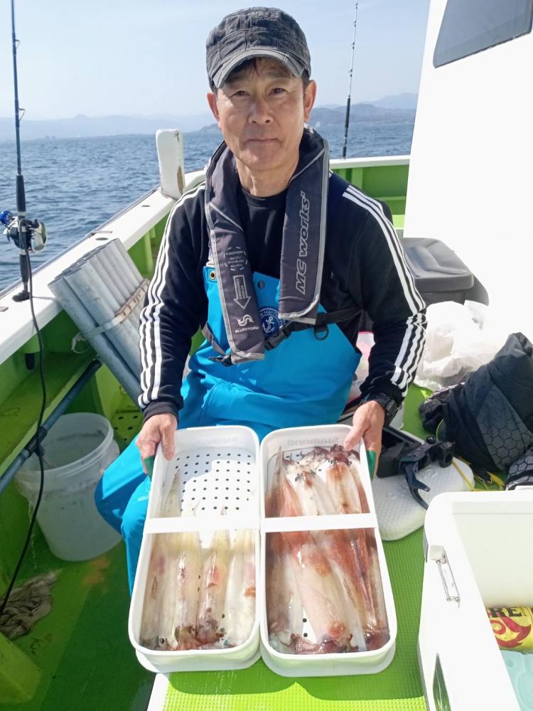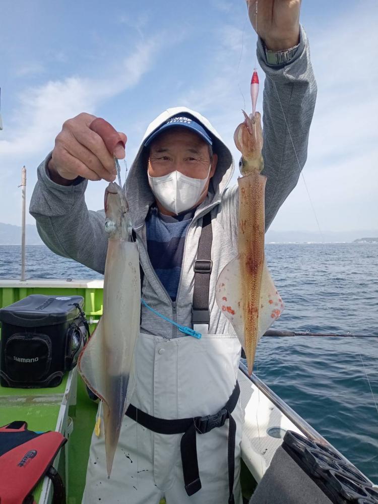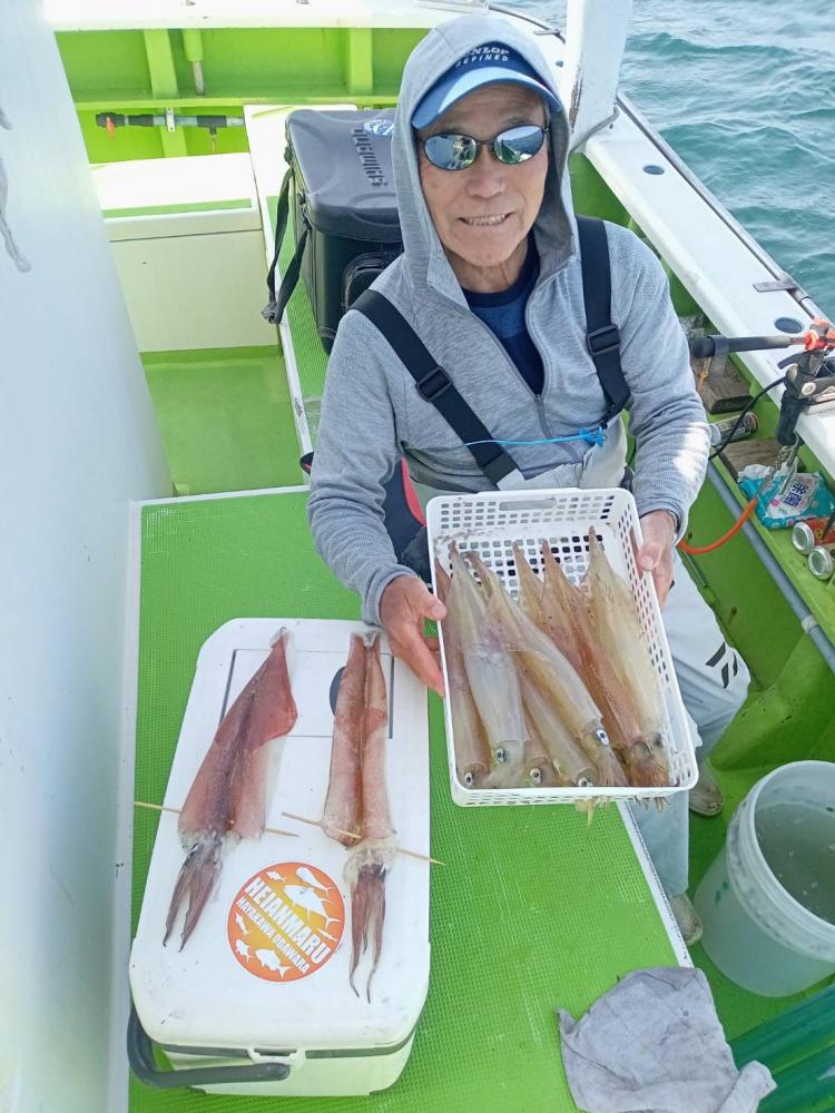 12日、久しぶりの出船です。二宮沖です。イカらしい反応は見られず・・・、下のエサ的反応や魚反応への混じりを狙う感じでした。空振り多めで、当たっても1人2人と当たり回らずでしたが、3点4点と多点掛けで釣果を伸ばした方も居たりでトップ12杯!!100m前後と浅場でしたが、サイズは良型主体でお土産十分でした。という事で、今日は、ヤリイカ4~12杯・25~43cm、スルメイカも交じりました。