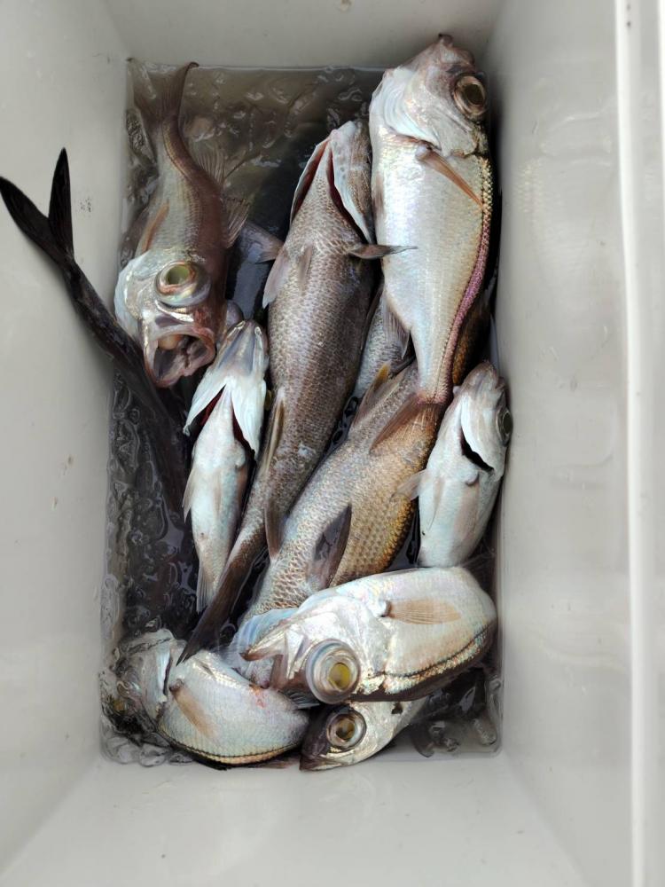 13日、今日は、クロムツ主体に狙おうと思い、二宮沖へ行きました。前半は、ポツンポツン当たりがあり、早々にお土産確保!!その後、少し深みを探索も、スミヤキだけ・・・。後半は、シロムツを狙い、多くはないものの、帰りまで顔を見れていました。という事で、今日は、お客さん1人で、クロムツ10匹・28~38cm、シロムツ多数・アジ・サバ・スミヤキ、が交じりました。明日も出船します!!皆さん、是非、遊びに来て下さい!!予約をお願いします!!